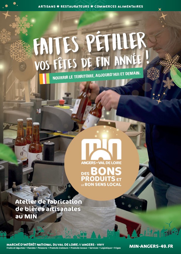 La Brasserie Angevine s’est implantée au MIN d’Angers en juillet dernier et vous apporte une offre toujours plus diversifiée. Le monde de la brasserie est rythmé par quelques saisons, la dernière bière brassée est la bière de Noël, distribuée à partir de mi-novembre. C’est une bière assez épicée, gourmande, riche, qui ressemble gustativement au pain d’épice !