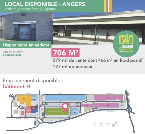 706 m² pour une activité de grossiste en fruits et légumes Descriptif à télécharger Découvrez tous les locaux disponibles ICI