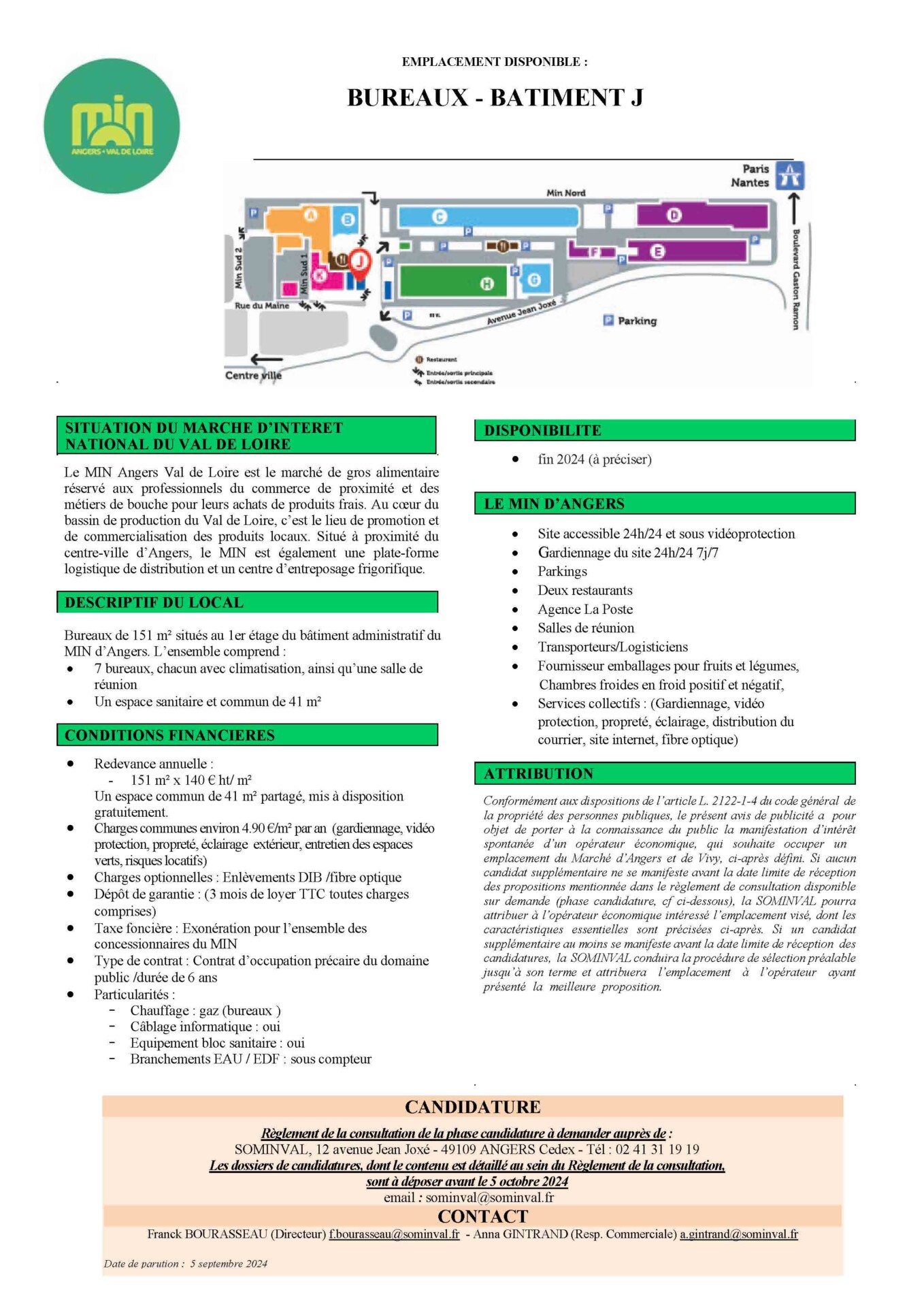 - Bureaux de 706 m² disponible de suite au MIN d’Angers